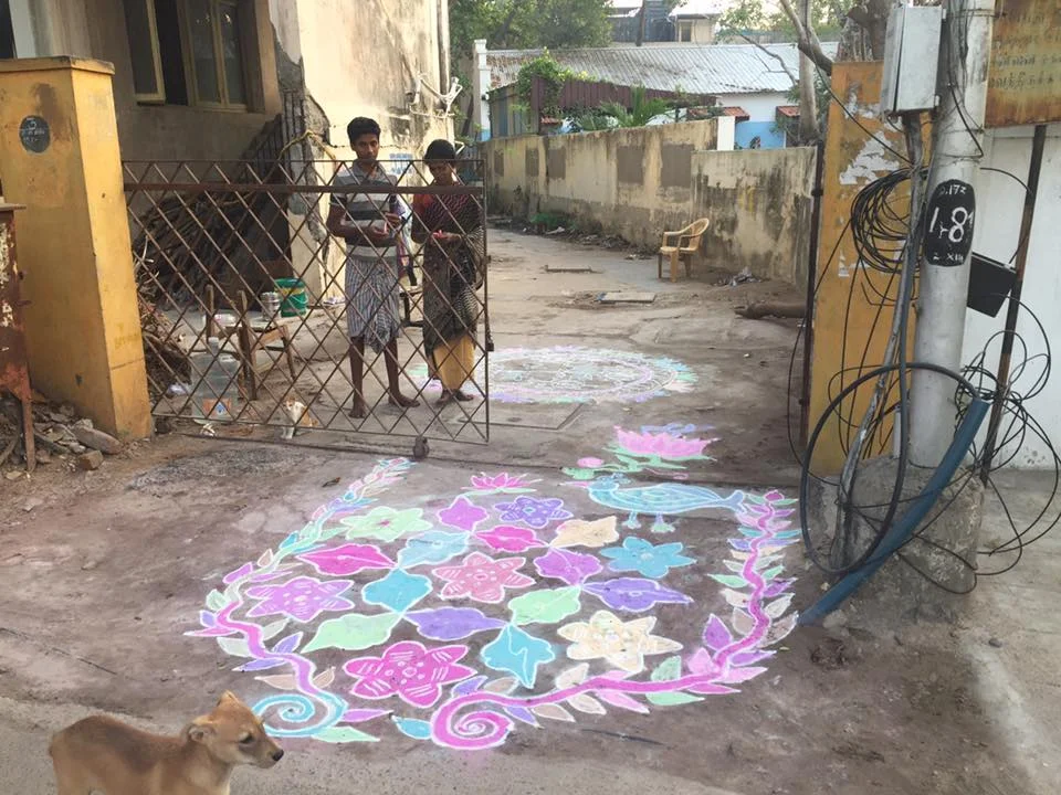 I walked by again on my way home from lunch and she showed me the book she was using to plan tomorrow's rangoli. <3